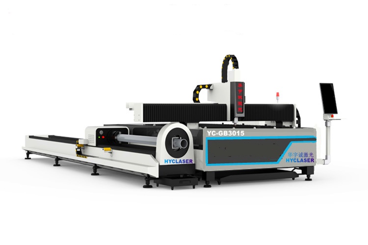 YC-GB3015板管一體激光切割機又名板管兩用光纖激光切割機既能切割板材,又能切割管材型材(包括方管、圓管、槽鋼、角鋼等),而且碳鋼、不銹鋼都能切割。一機多用,性價比較高。床身采用鑄鐵床,齒輪齒條傳動系統(tǒng),專業(yè)切管數(shù)控系統(tǒng),精度高,功能全,使用方便,操作簡單。板管兩用光纖激光切割機適合綜合型加工制造企業(yè)。